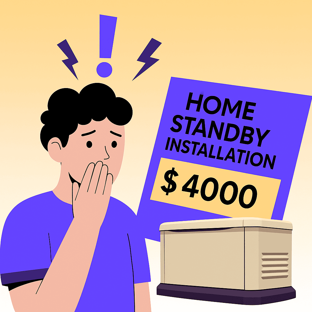 Home Standby Generators are advertised without the install price which is often close to 1:1 the product cost. Many installers advertise “low-cost” installation packages, but the final price often balloons once site preparation, gas line work, electrical upgrades, and permits are added. What looks like a $2,000 job can easily exceed $4,000–$6,000.